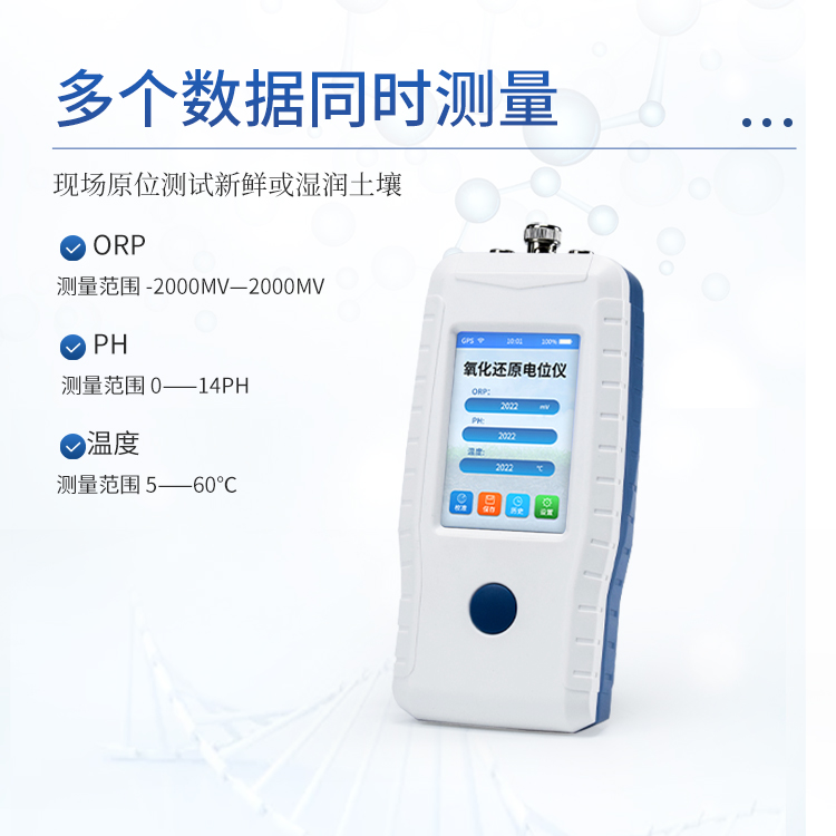 土壤氧化还原电位仪主要用于现场原位测试新鲜或湿润土壤的氧化还原电位、水(介质)氧化还原电位、PH、温度等数据的测量。土壤氧化还原电位(ORP/Eh)作为土壤环境条件的一个综合性指标,已沿用很久,它表征介质氧化性或还原性的相对程度,对土壤的化学和生物学过程有重要的影响,是理解土壤的性质和过程的重要参数。氧化还原电位越高,氧化性越强,氧化还原电位越低,还原性越强。电位为正表示溶液显示出一定的氧化性,为负则表示溶液显示出一定的还原性。