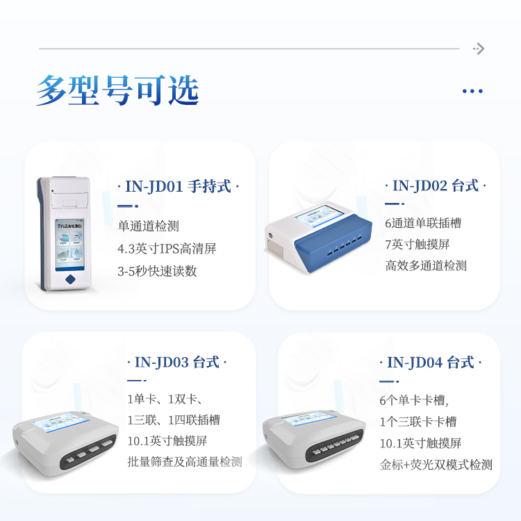11、检测时间:< 5秒 (单卡及多联卡);可对样本进行胶体金定性/半定量检测。